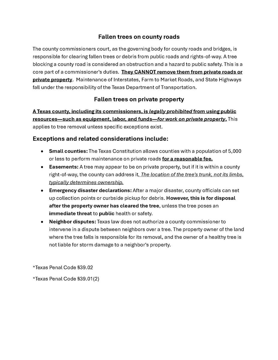 Spring time storms are here, and our office has been receiving a lot of calls from constituents regarding neighbors' trees or limbs falling on their property. Hopefully, this link will answer a few questions.